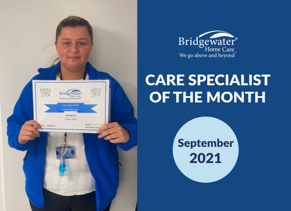 Congratulations to Hayley Allen on being awarded Care Specialist of the month at Bridgewater Home Care Bolton for September 2021.